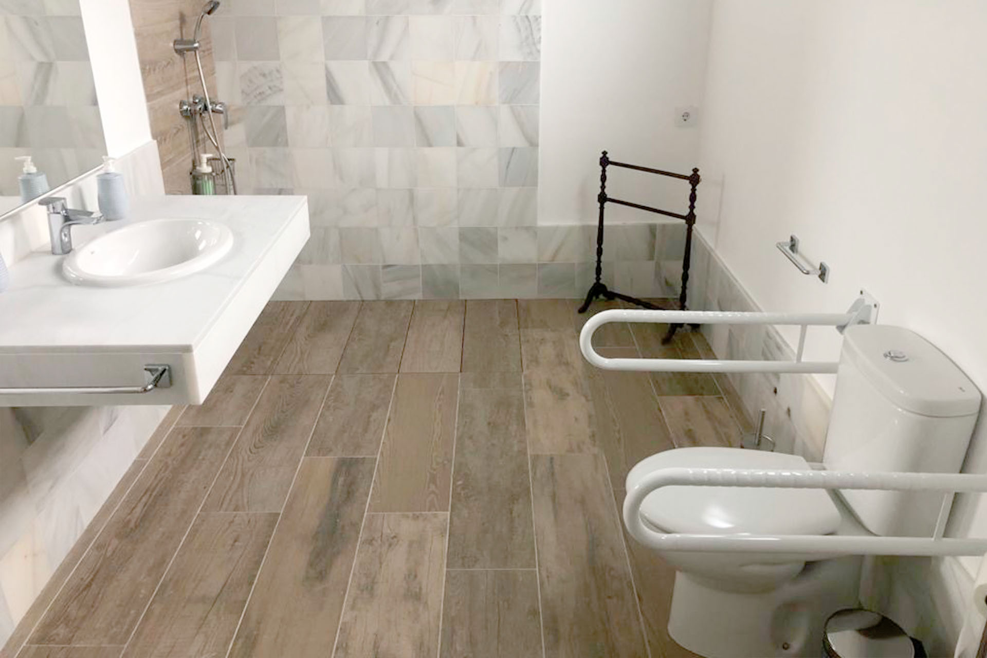 Disponemos de un dormitorio con cuarto de baño adaptado y la piscina tiene un elevador para facilitar el baño a personas con movilidad reducida